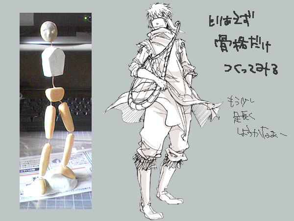 前に描いた冒険者をモデルにパテを練りつつ考えます。結局はテオムになるかも。